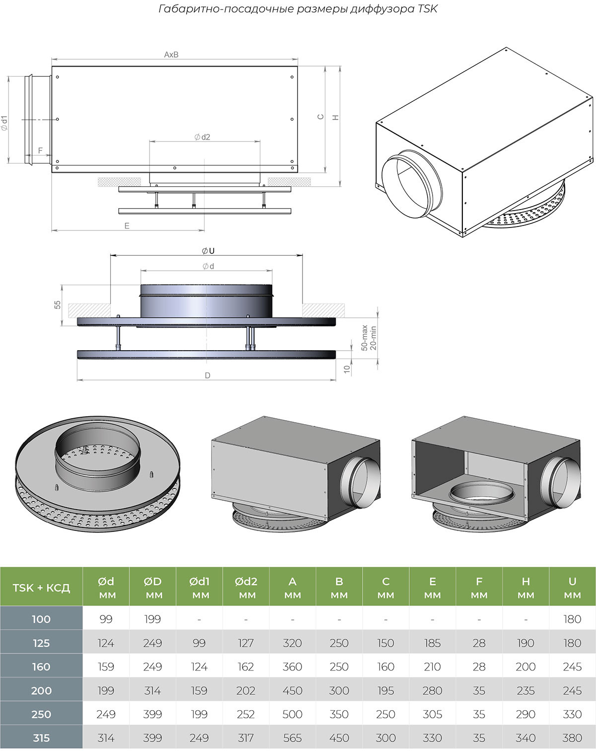 Диффузоры TSK обладают высокой степенью эжекции, что делает возможной максимальную разницу температур для охлажденного воздуха ΔТ 12 °C.