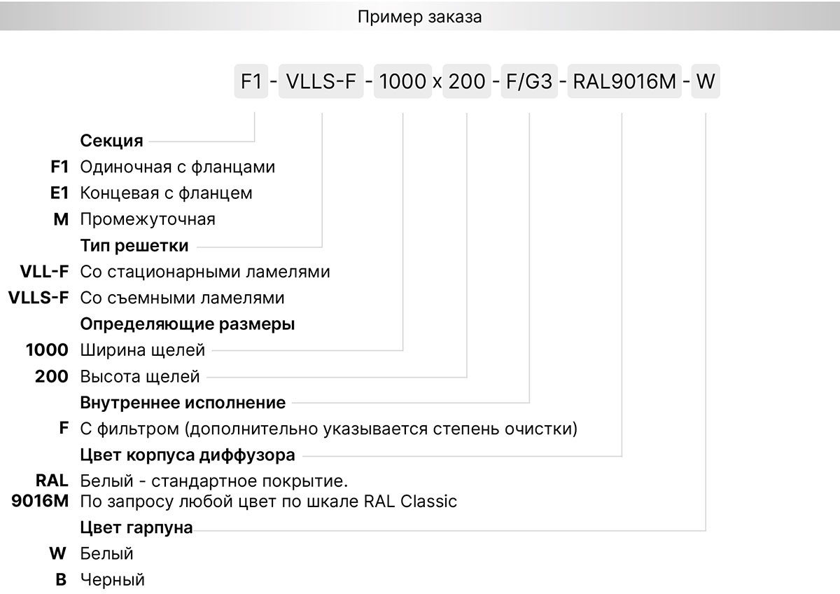 - решетки со съемным полотном VLLS-F могут комплектоваться фильтром по запросу;
