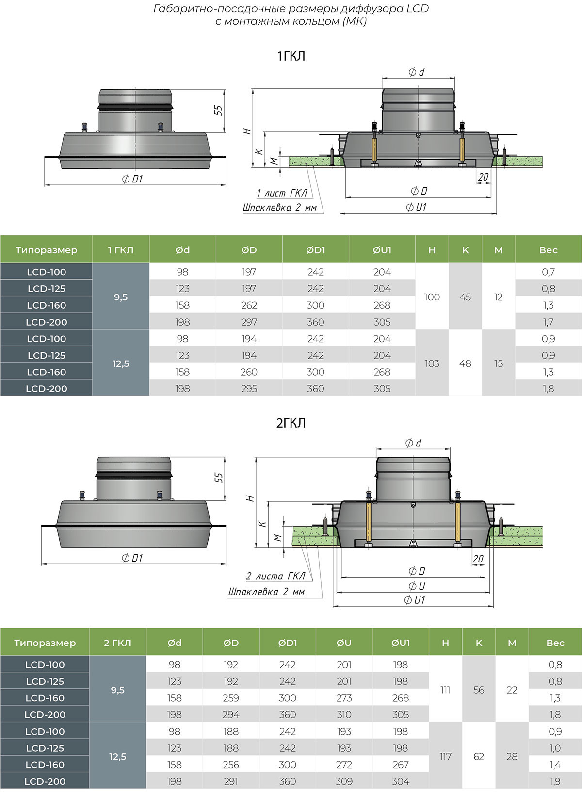 - Типоразмеры 100, 125, 160, 200 соответствуют диаметру подводящего воздуховода.